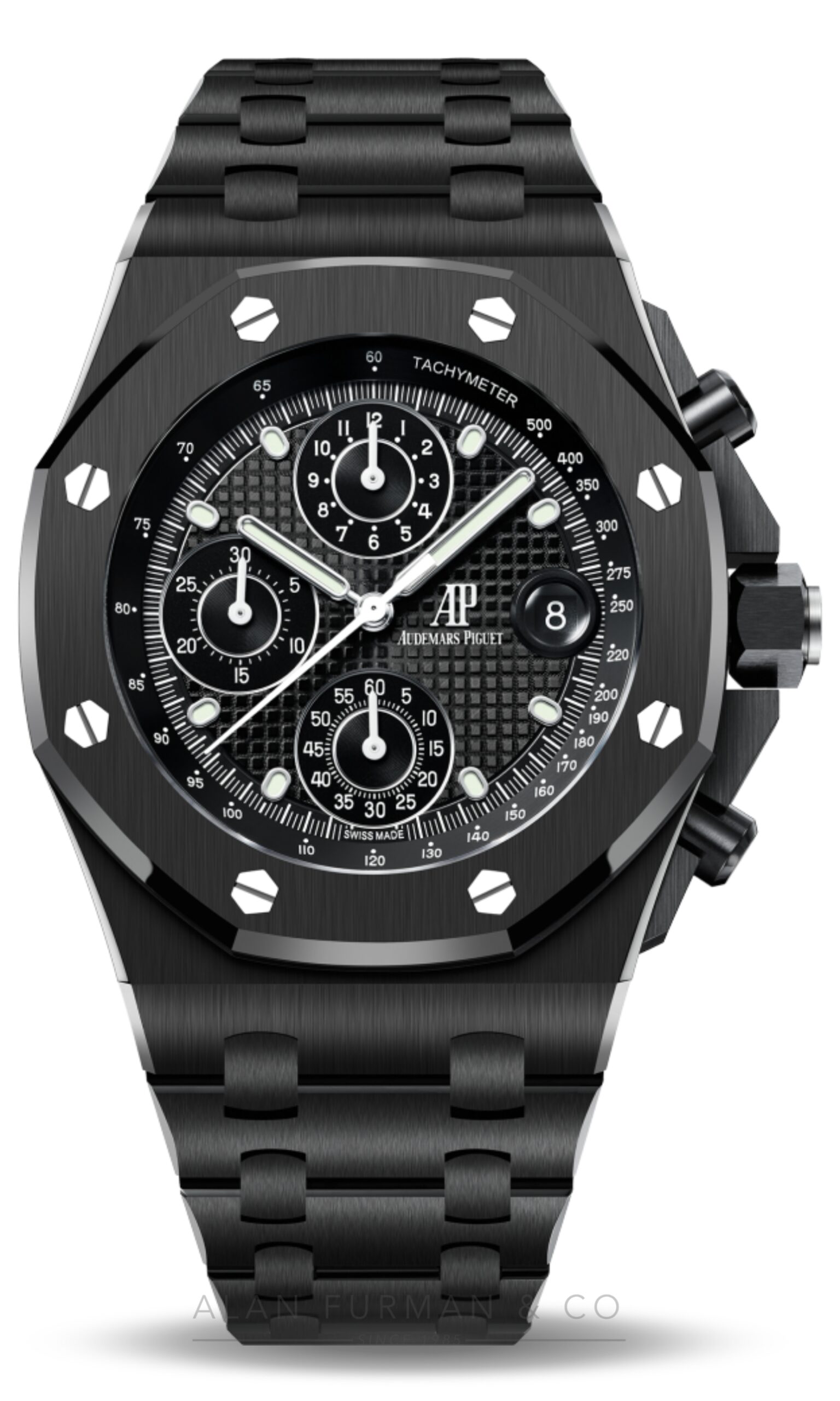 Alan Furman & Company features authentic Audemars Piguet Royal Oak Offshore (Ref. 26238CE.OO.1300CE.01). Every Audemars Piguet watch, along with Audemars Piguet Royal Oak Offshore (Ref. 26238CE.OO.1300CE.01), we sell is guaranteed to be authentic. We have been selling Audemars Piguet Watches since 1985. We discount genuine Audemars Piguet watches including Royal Oak, Millenary, Tradition, and Classique models. We guarantee each watch is thoroughly inspected before being shipped to you. Our fine watch division offers great discounts on all Audemars Piguet watch models. We honor the manufacturer’s warranty on every watch that we sell. These watches will be accompanied by a warranty from Alan Furman & Co. which displays our written guarantee. Merchandise and watches may be returned to us for warranty repair or replacement. Items purchased from us that are not special orders may be returned unused for a full refund, less shipping costs. All returns must be made within 10 days of receipt.