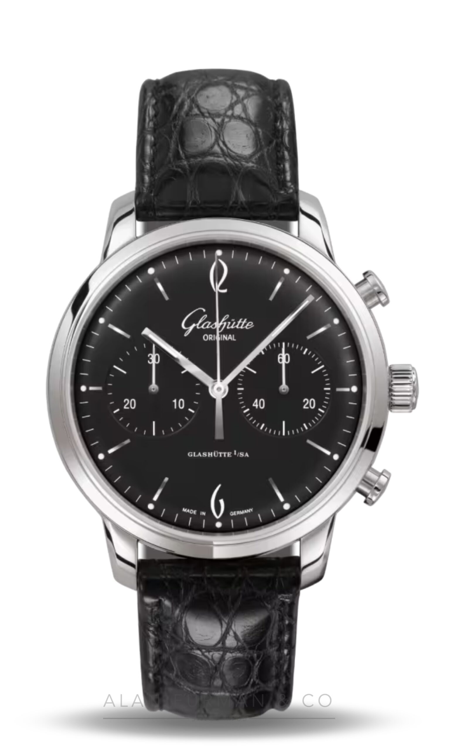- Black crocodile leather strap