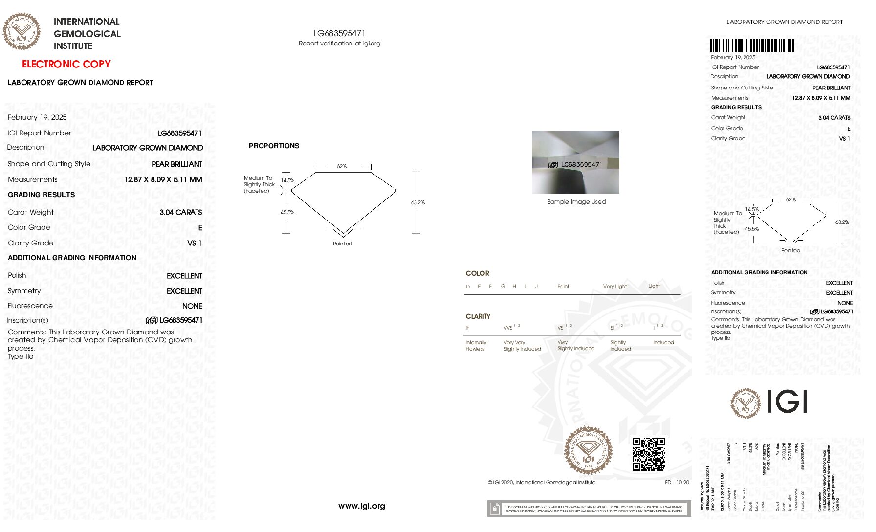 - 3.04 CTTW Pear Lab Diamond – IGI Certified