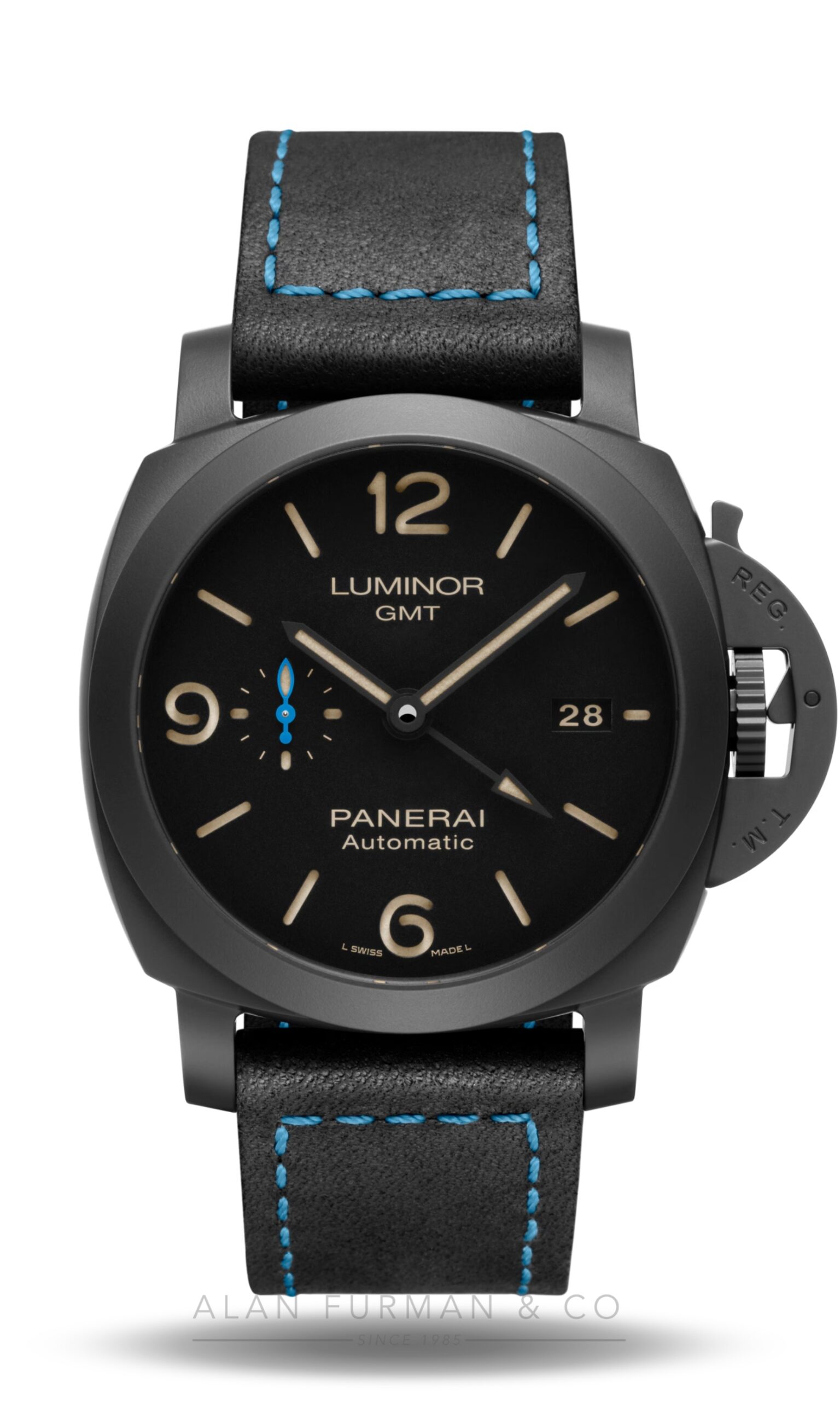 Alan Furman & Company features authentic Panerai Luminor GMT (Ref. PAM01441). Every Panerai watch, along with Panerai Luminor GMT (Ref. PAM01441), we sell is guaranteed to be authentic. We have been selling Panerai Watches since 1985. We discount genuine Panerai watches including Radiomir, Radiomir 1940, Luminor, and Luminor 1950 models. We guarantee each watch is thoroughly inspected before being shipped to you. Our fine watch division offers great discounts on all Panerai watch models. Most Panerai’s are either stocked in our inventory or is readily available in a matter of days. We honor the manufacturer’s warranty on every watch that we sell. These watches will be accompanied by a warranty from Alan Furman & Co. which displays our written guarantee. Merchandise and watches may be returned to us for warranty repair or replacement. Items purchased from us that are not special orders may be returned unused for a full refund, less shipping costs. All returns must be made within 10 days of receipt.