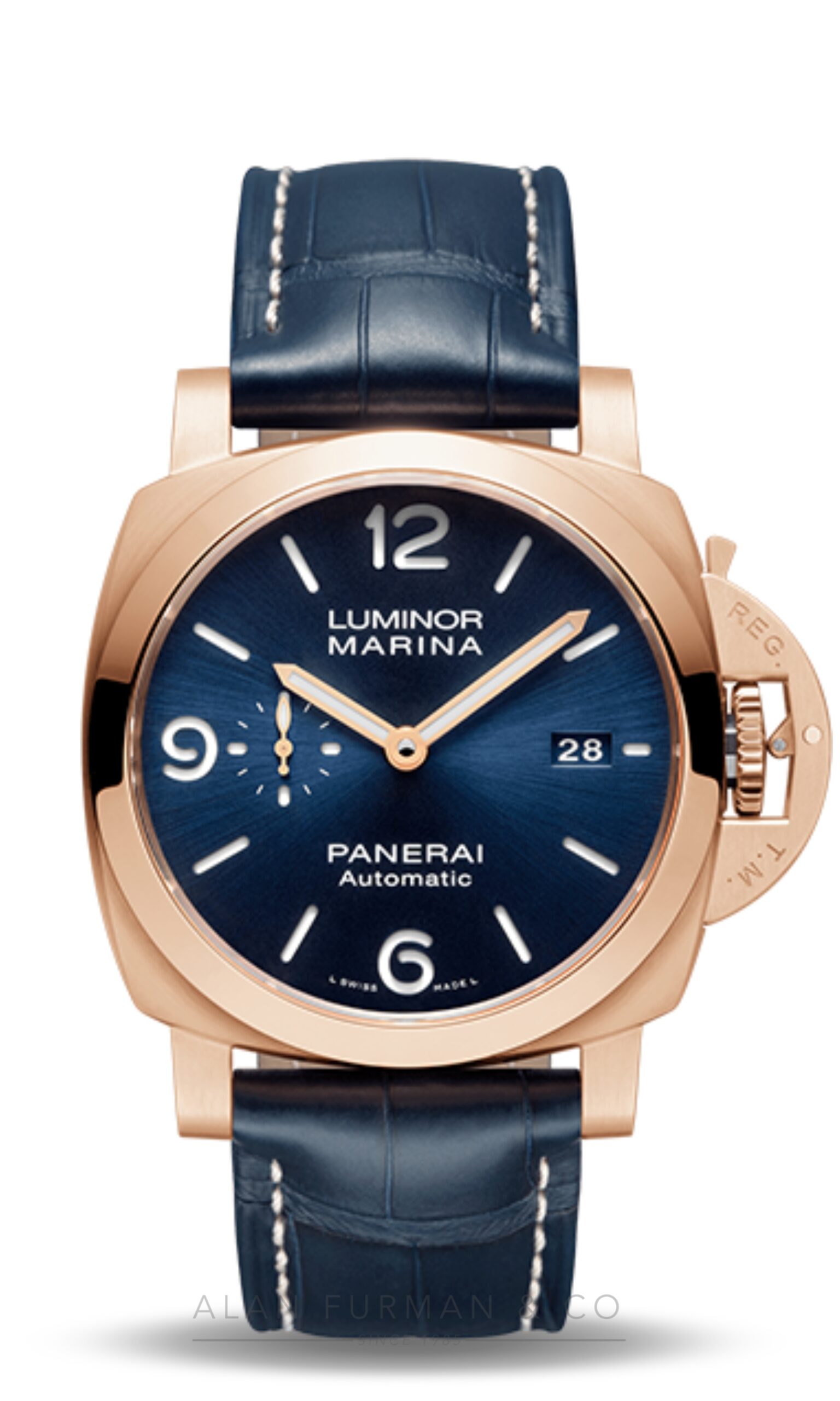 Alan Furman & Company features authentic Panerai Luminor Marina Goldtech™ Sole Blu (Ref. PAM01112). Every Panerai watch, along with Panerai Luminor Marina Goldtech™ Sole Blu (Ref. PAM01112), we sell is guaranteed to be authentic. We have been selling Panerai Watches since 1985. We discount genuine Panerai watches including Radiomir, Radiomir 1940, Luminor, and Luminor 1950 models. We guarantee each watch is thoroughly inspected before being shipped to you. Our fine watch division offers great discounts on all Panerai watch models. Most Panerai’s are either stocked in our inventory or is readily available in a matter of days. We honor the manufacturer’s warranty on every watch that we sell. These watches will be accompanied by a warranty from Alan Furman & Co. which displays our written guarantee. Merchandise and watches may be returned to us for warranty repair or replacement. Items purchased from us that are not special orders may be returned unused for a full refund, less shipping costs. All returns must be made within 10 days of receipt.