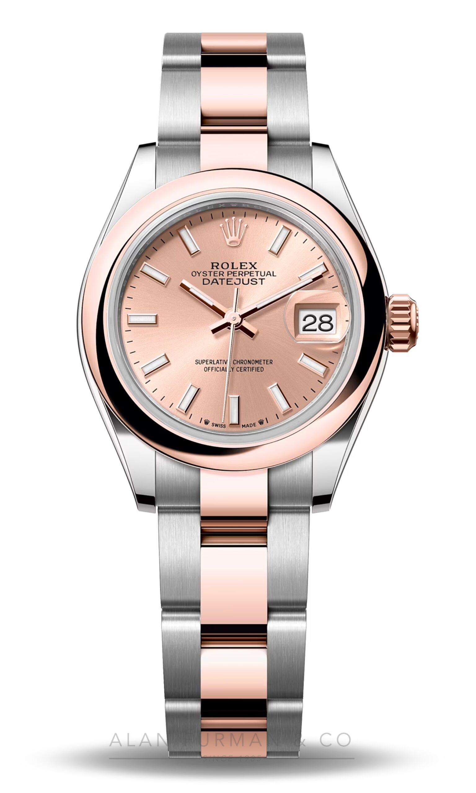 - Everose Rolesor case comprised of a steel monobloc middle case