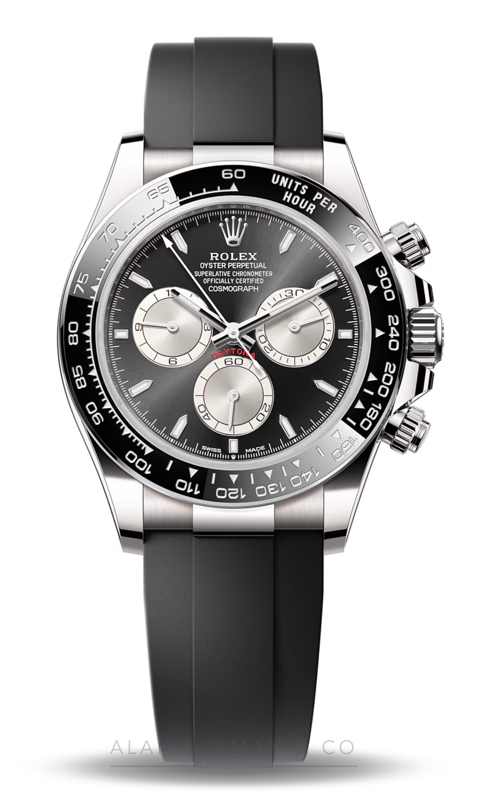 - Black monobloc Cerachrom bezel with engraved tachymetric scale