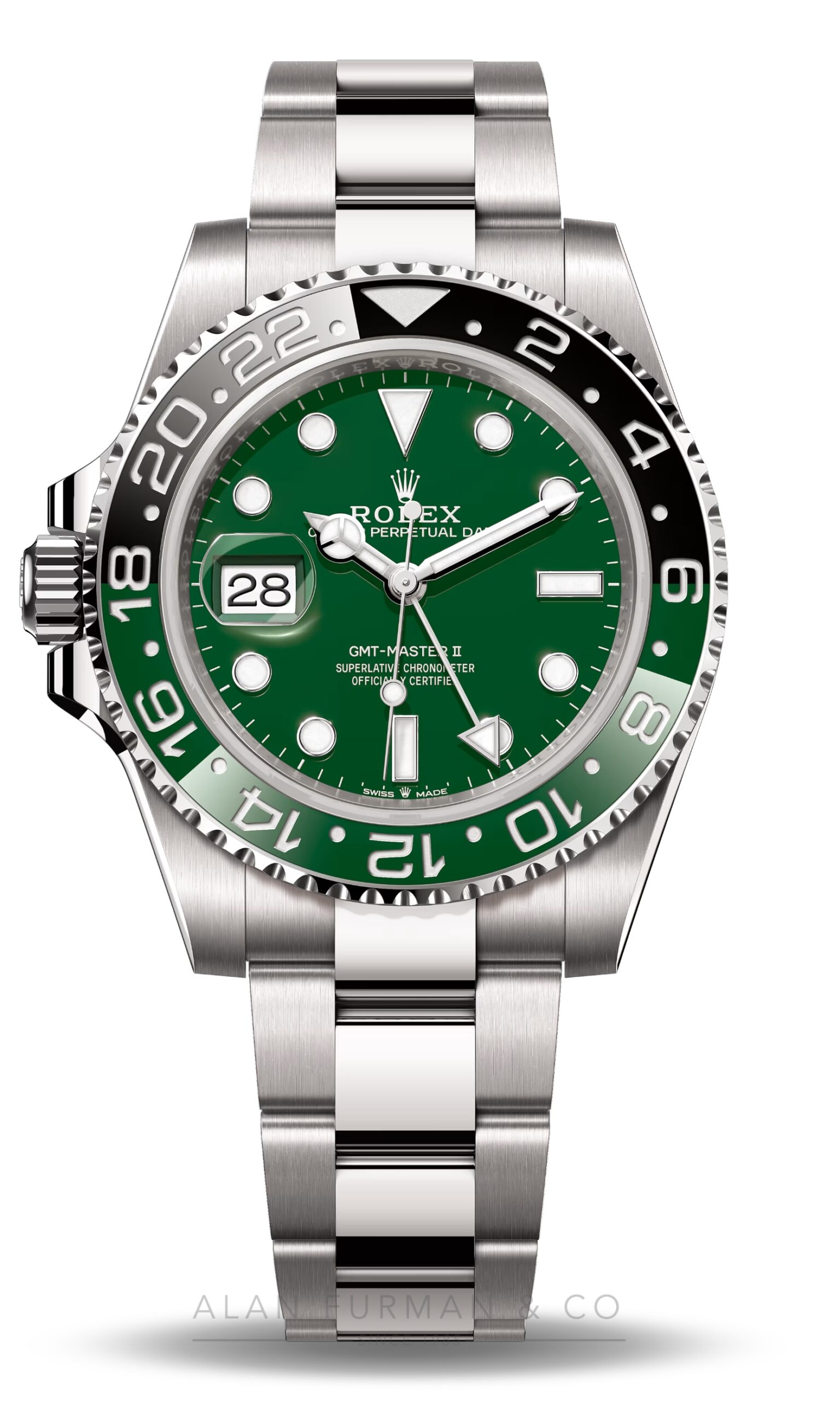 – BEZEL: Bidirectional rotatable 24-hour graduated bezel. Two-colour green and black Cerachrom insert in ceramic, moulded numerals and graduations