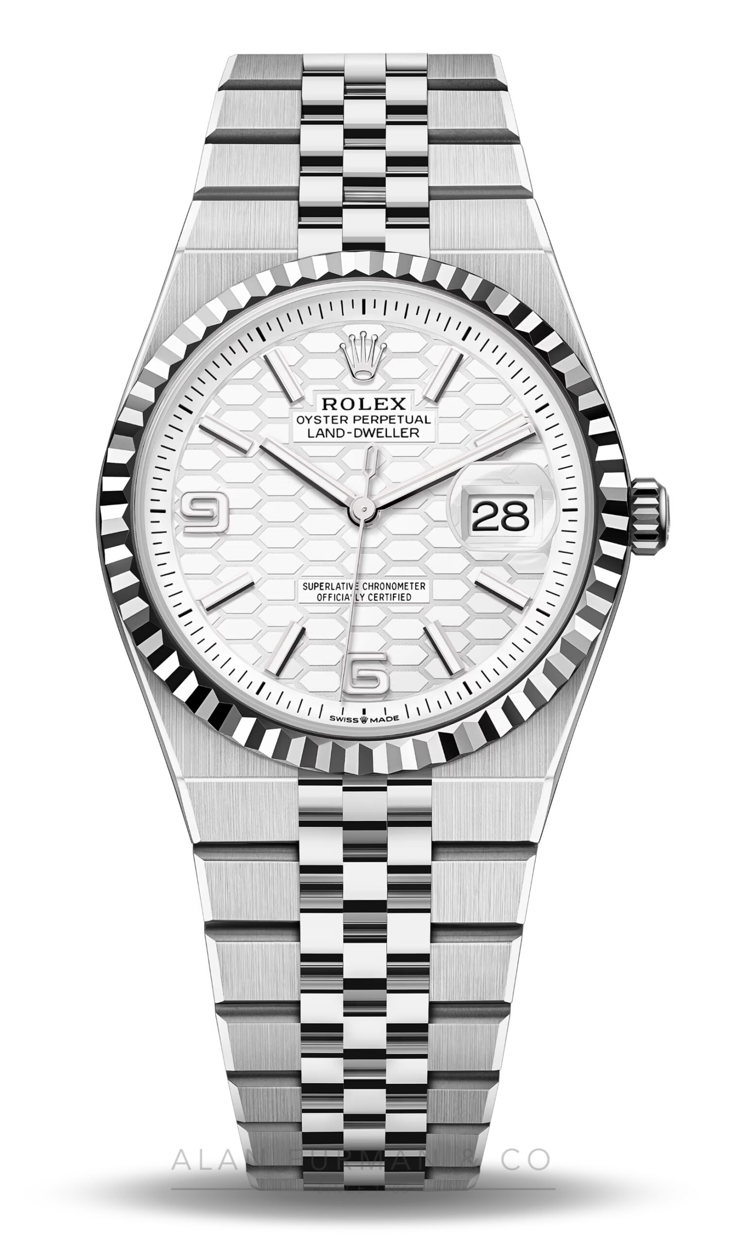 - Dial: Intense white, honeycomb motif
